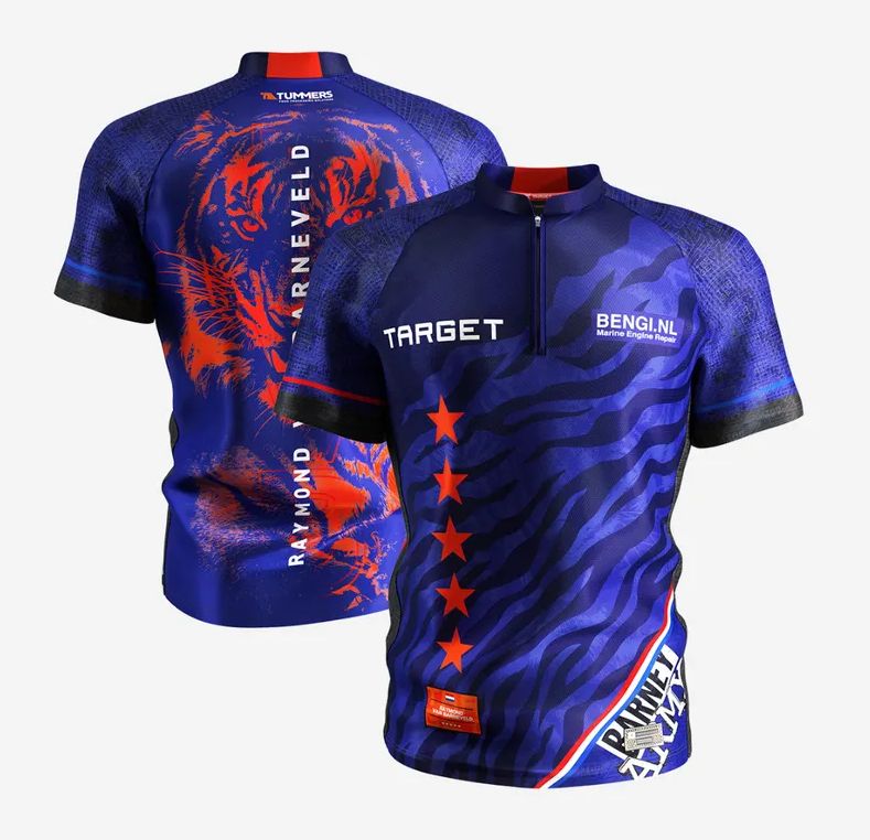 Het officiële Raymond van Barneveld shirt 2025 is een premium dartshirt ontworpen in samenwerking met de vijfvoudig wereldkampioen.